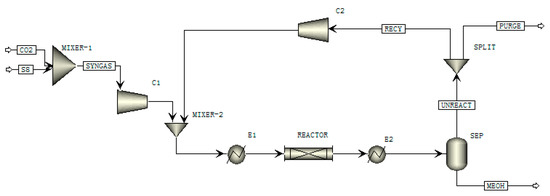 The above studies are mainly based on thermodynamics to reach a higher energy utilization, achieve a reduction on energy consumption, and realize the optimization of reaction conditions, like gas recycle ratio, operating temperature and pressure, etc. However, studies are less focused on matching products proposal and syngas component ratio, like (H2 − CO2)/(CO + CO2) ratio, which is specified for chemical synthesis.