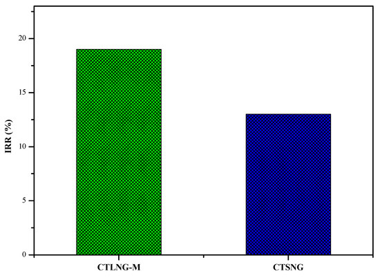 The IRRs of the CTLNG-M and CTSNG processes are compared in