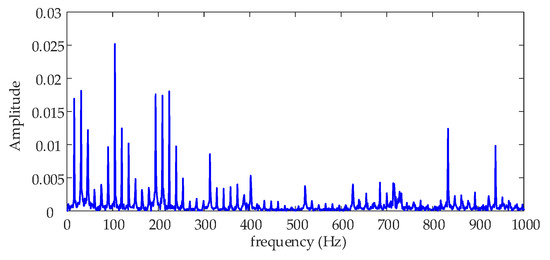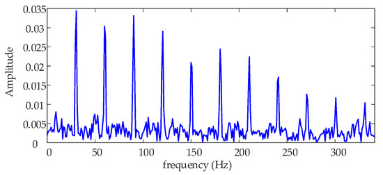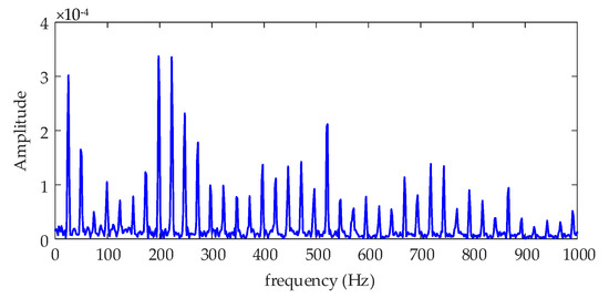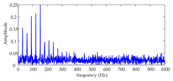 The center spring wear fault signal of fluid pressure in the frequency domain is shown in Figure 12.