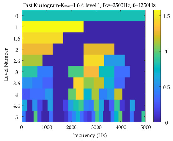 In order to illustrate the validation and advantages of the Autogram, the signal is also analyzed by FK. Colormap presentation obtained based on FK is illustrated in Figure 19.