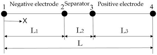 The schematic diagram of the one-dimensional electrochemical model of the lithium-ion battery monomer is shown in Figure 2.