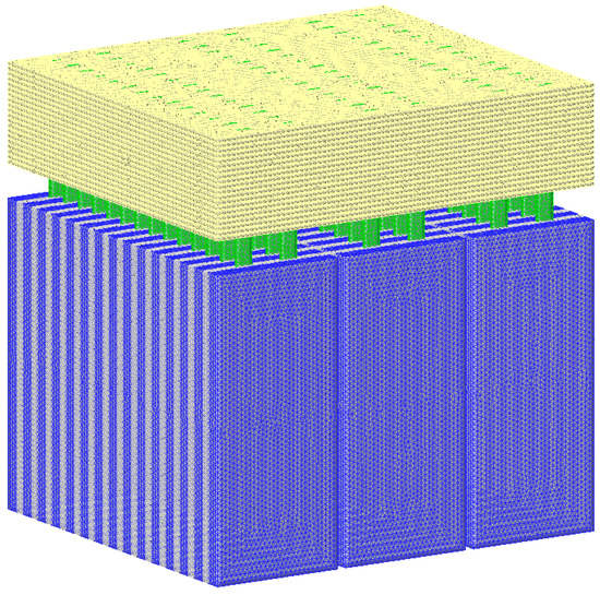 The heat pipe cooling system was meshed with different sizes. As the grid numbers continue to increase from 498,775, the battery temperature difference did not change much, indicating that the meshing error could be ignored. So, the mesh number of 498,775 is adopted, and the mesh model is shown in Figure 5.