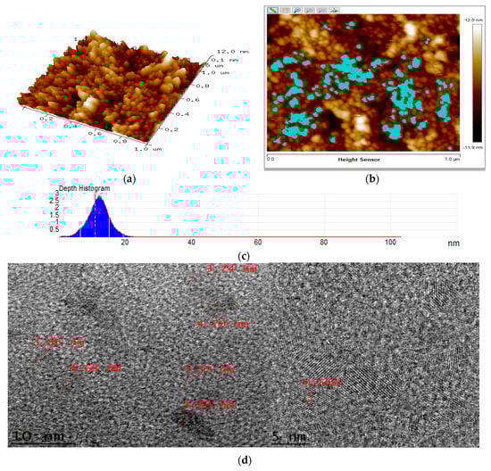 3.4.1. Atomic Force Microscopy (AFM) and High Resolution Transmission Electron Microscopy (HrTEM) of Carbon Dots (CDs)