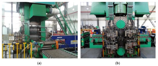 The actual physical parameters of the 650 4/6-roll cold rolling mill from the “National Engineering Research Center for Equipment and Technology of Cold Strip Rolling” are employed in the following research. Some unmeasured parameters are empirical estimates. The parameters are shown in Table 1. The photos of the 650 4/6-roll cold rolling mill are displayed in Figure 5.
