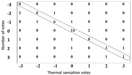 Thermal comfort (TC) is an ergonomic aspect determining the satisfaction about the surrounding environment and is defined as “that condition of mind which expresses satisfaction with the thermal environment and is assessed by subjective evaluation” []. The effect of thermal environments on occupants might also be assessed in terms of thermal sensation (), which can be defined as “a conscious feeling commonly graded into the categories cold, cool, slightly cool, neutral, slightly warm, warm, and hot” []. Thermal sensation and thermal comfort are both subjective judgments, however, thermal sensation is related to the perception of one’s thermal state, and thermal comfort to the evaluation of this perception []. The assessment of thermal sensation has been regarded as more reliable and. as such. is often used to estimate thermal comfort [].