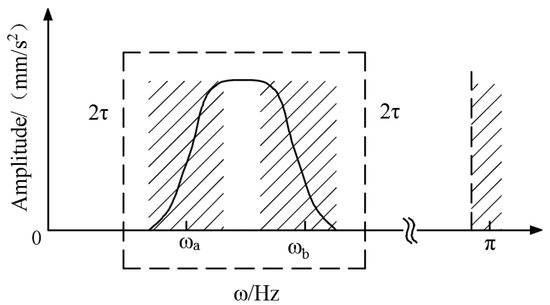 In Figure 2, the frequency window is represented as , where is the central frequency of the lower cutoff band of the window. The shaded area represents the transition region of the segmented portion of the spectrum with width 2. The range of the d support interval is . The frequency window can slide freely in the interval, and the width range is adaptively variable.