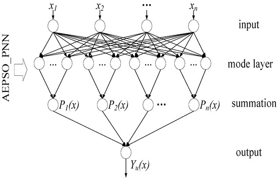 The network structure of the AEPSO_PNN includes four parts: the input layer, the mode layer, the summation layer, and the output layer, as shown in Figure 4.