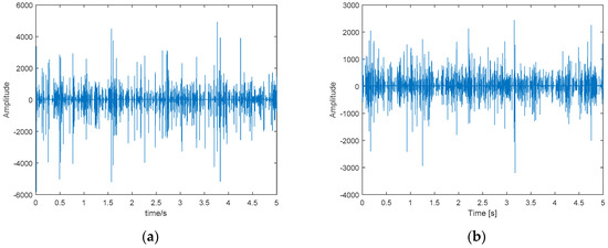 As Figure 8 shows, there is a large amount of noise in the vibration signal from the mill cylinder in all three load states, which makes it difficult to effectively extract feature information. To extract the characteristics of the vibration signal of the cylinder, the original signal must be preprocessed. The preprocessing steps are as follows.