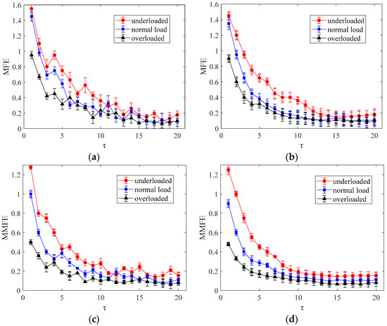 - To obtain an accurate MFE calculation result, the data length N should be greater than . In addition, the maximum scale factor should also be considered when calculating the MFE, and the value of is usually between 10 and 20; thus, a = 20 is used in this study.