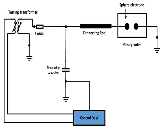 As the breakdown occurs, the voltmeter measures the breakdown voltage across the measuring capacitor. Prior to starting the experimental breakdown voltage tests, AC Voltage of identified value was applied to a voltmeter and measuring devices for calibration purposes to minimize errors and improve precision. All experimental results were obtained at room temperature (20–25 °C). The pressure vessel’s temperature rise has been avoided by the interval of 5 min between two consecutive breakdowns as recommended in [14].