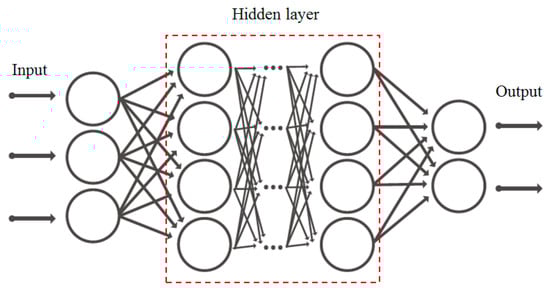 The RBNN model was applied for the surrogate modeling from the objective functions. The RBNN as a neural network model, presented in Figure 6, consists of a hierarchical structure that starts at the input stage and ends at the output stage, where each stage is known as a layer. There are intermediate layers between the input and output stages, known as hidden layers. By controlling the number and size of these hidden layers, arbitrary complex functions can be learned, and the surrogate models can be constructed. The RBNN includes a two-layered hidden network containing a layer of radial neurons and an output of linear neurons. The hidden layer uses a series of radial primitives to nonlinearly modify the input space to the intermediate space. The output layer then executes a linear combiner to produce the desired target. In this study, MATLAB built-in code ‘radbas’ and ‘newrb’ were used to perform radial basis function-based machine learning [27]. ‘Newrb’ makes a two-layer network. As mentioned above, the first layer constructed by ‘radbas’ is radial basis neuron network and the second layer is linear neuron network. This combination model f(x) for the formulation can be represented as a linear combination of a set of N radially-symmetric functions as follow: