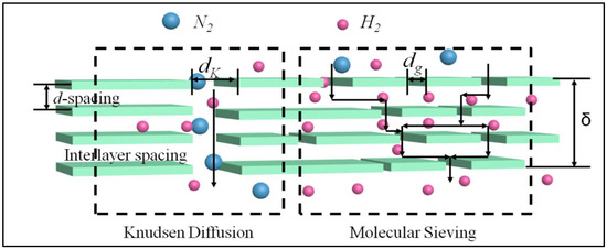 Figure 4), thus it is favorable to separate them by molecular sieving diffusion. Therefore, hydrogen transport mechanism models in the MXene membrane are the combined Knudsen diffusion and molecular sieving, which correspond to the diffusion through straight nanochannels of structural defects, and tortuous nanochannels contained interlayer spacing between stacked MXene sheets, respectively. Hence, H
