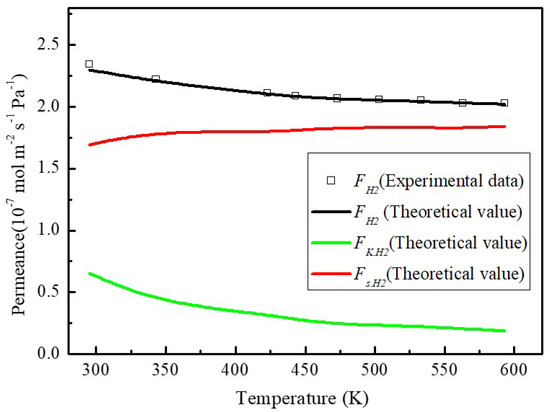2 permeance in the temperature range of 295~593 K in experimental (