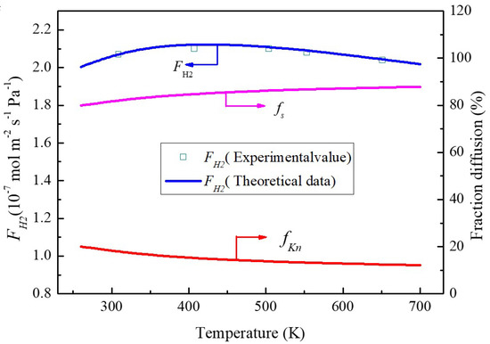 2 is always enhanced. Such results can be interpreted by the joint effects of molecular sieving and Knudsen diffusion. From molecular sieving (Equation (12)), it reveals an exponential dependence of gas permeance on the temperature, which is obviously different from that of Knudsen diffusion. However, these trends are ascribed to the coverage of functional groups such as −OH and −O which will affect the adsorbed amount of hydrogen [