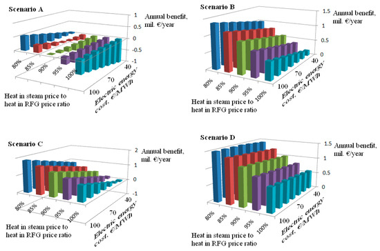 Emission costs are related to pollutant production change and their specific cost, cn. For carbon dioxide, these result from the actual carbon trading market situation. For other pollutants, emission fees are imposed on the producer by legislation. Thus, a change in pollutant production results in emission costs change, , as follows from Equation (22), and has to be incorporated into economic considerations [48].