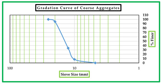 A well-graded crushed coarse aggregate maximum size of 20 mm is used for EPS-beads lightweight concrete specimens casting, and their physical properties are shown in Table 4. Also, these aggregates contain both calcareous and siliceous content. The grain size distribution (sieve) analysis is shown in Figure 2.
