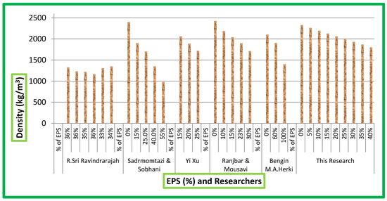 Comparative analysis of EPS-beads density of this study with Ravindrarajah, R. Sri [59], Sadrmomtazi, A., et al. [60], Xu, Yi, et al. [6], Ranjbar, M.M., and Mousavi, S.Y. [61], and Herki, B. [2].
