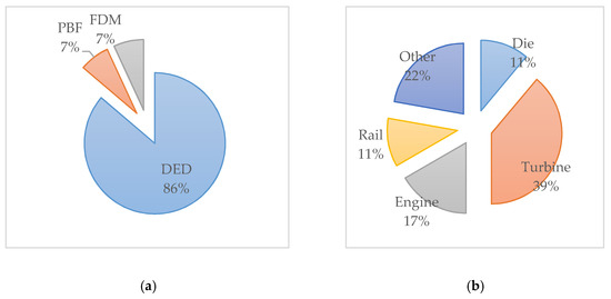 The chart diagram reveals the types of technology for repair and restoration from among the seven principles of AM technology (a), whereas the second diagram depicts the objects that have undergone reparation using AM, as reported by earlier researchers (b).