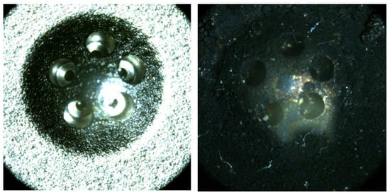 Figure 3 shows the high levels of deposit formation at different parts of the injector, especially the deposit formation in the injector tip; in addition, apparent layers of deposits could be located near the injector tip-dome. Furthermore, a remarkable amount of the deposits gathered nearby the periphery of the hole.