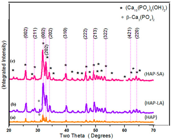 XRD pattern of (a) HAP (b) HAP-LA (c) HAP-SA.