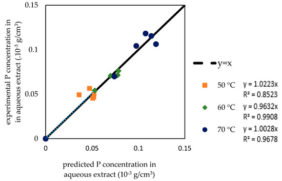 The correlation of the predicted and experimental P concentration in aqueous extract.
