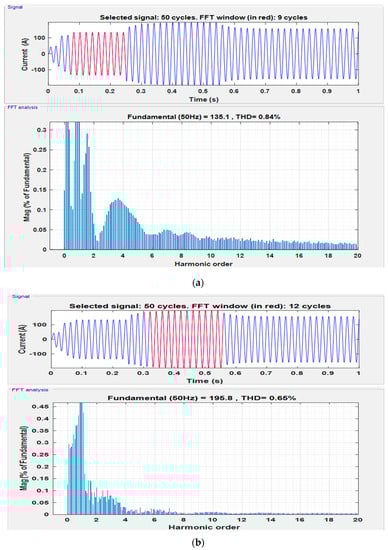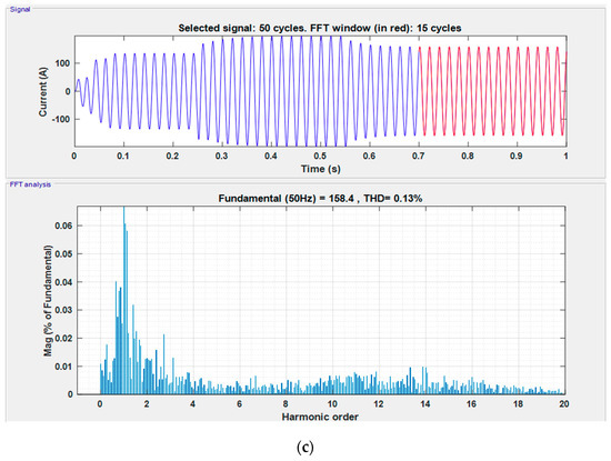It can be seen from Figure 10 that the solar PV dc output current is inverted into almost pure sinusoidal waveform by the proposed controller with the least possible distortion. Furthermore, to analyze the harmonic contents present in the obtained current waveform, the Fast Fourier Transform (FFT) analysis has been carried out for all three operating conditions of the system and the results are depicted in Figure 11.