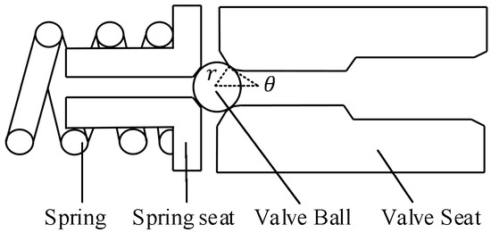 X is the slight slippage of the valve ball under the action of the spring force that can be calculated from the Hertz contact theory in