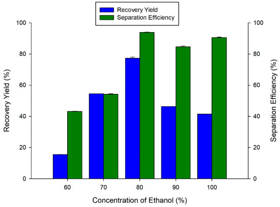3.4. Effect of Different Concentrations of Ethanol on the Recovery of Proteins