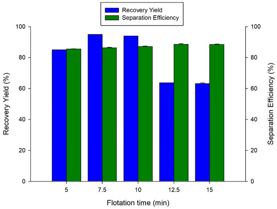 3.7. Effect of Flotation Time on the Recovery of Proteins