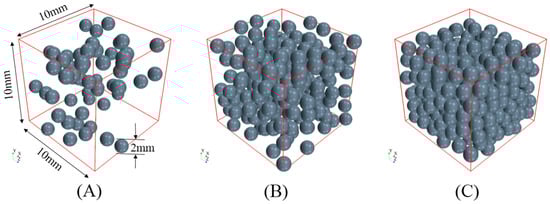 The geometric model can be established by the discrete element method (DEM). Particle seeds can be randomly distributed in a specified region, and the particles are generated according to the position of the particle seeds until there is no room left for the particle growth or the volume fraction of particles meets the requirements [17]. However, when the specified particle volume fraction is large, there will be insufficient space remaining in the region. At this point, gravity needs to be added to the particles in the region to make the distribution of the particles more compact so as to meet the requirement of the voidage. The diameter of sphere (d) is 2 mm in this study.