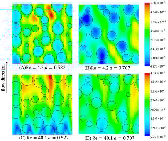 In this section, the main objective is to investigate the flow characteristics of fluid in the anaerobic granule swarm, in order to understand the flow state in the anaerobic bioreactor with different voidages and Reynolds numbers.