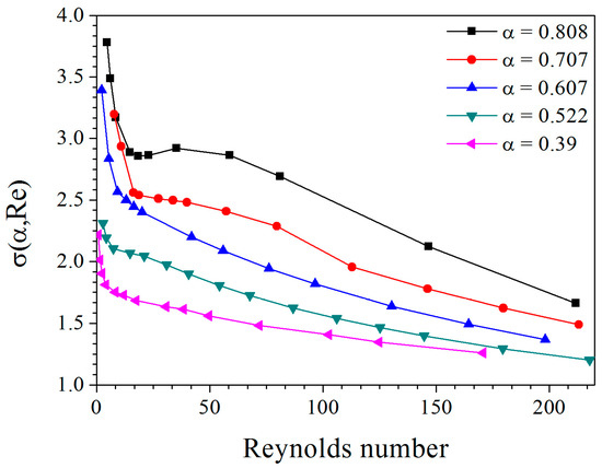There have been many studies in the past focusing on the determination of the index term of . For example, it can be considered as a constant (3.7) in Wen and Yu’s work [23], which is independent of voidage and Reynolds number. However, its applications may be inaccurate. Many efforts have been made to establish a more reliable correlation. The correlation proposed by Felice [24] is probably the most attractive one, given by