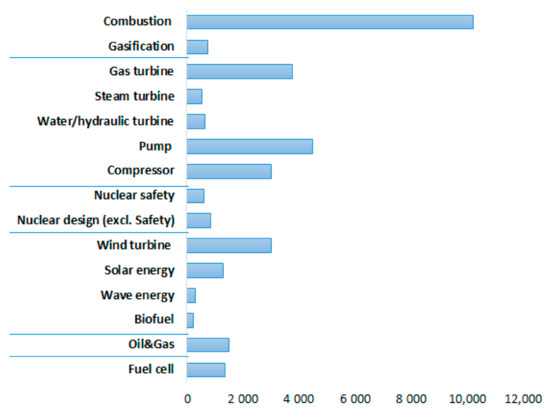 To date, there has been a significant scientific production regarding CFD application in the areas indicated in Figure 1. The number of publications identified for each particular field are presented in Figure 2.