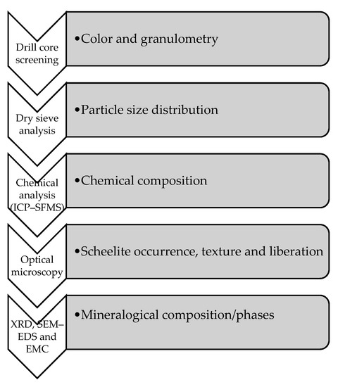 The above characterization methods for the drill core samples are summarized in Figure 4.