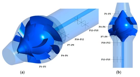 Fifteen monitoring probes in the waterjet propulsion pump are shown in Figure 4, and the locations of each probe are listed in Table 1.