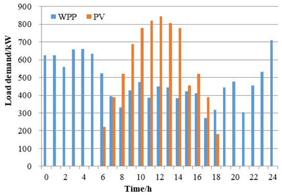 Available output of WPP and PV on a typical day. WPP: wind power plant; PV: photovoltaic power generation.