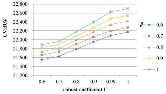 Finally, according to the objective function in Equation (35), combined with the constraints of Equations (40) and (19)–(31), a risk aversion optimization model with the CVAR method and robust stochastic optimization theory could be established. The specific model is as follows: