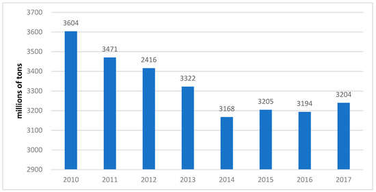 Total CO2 emissions in millions of tons in European Union member states from 2010 to 2017. Source: Eurostat [26].