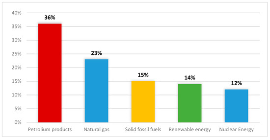 As can be seen from the figure above, the energy consumed in the European Union came from nuclear energy (12%), renewable energy (14%), solid fossil fuels (15%), natural gas (23%), and petroleum products (36%).