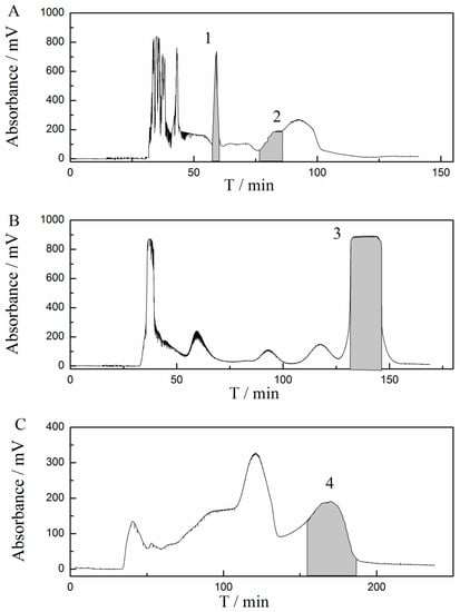 The purity of components (1–3) and compounds separated by HSCCC was analyzed by HPLC-UV under suitable conditions. According to the peak area normalization method, the purity of each compound was higher than 91%. The HPLC-UV chromatograms are shown in Figure 5.