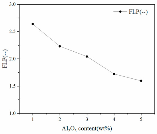 The change of the liquid phase fluidity when the Al2O3 content changed from 1 to 5 wt % is shown in Figure 1.