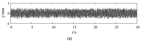 Time-domain waveform of vibration displacement signal under different flow. (a) Flow of 40 L/s, (b) Flow of 50 L/s, (c) Flow of 60 L/s.