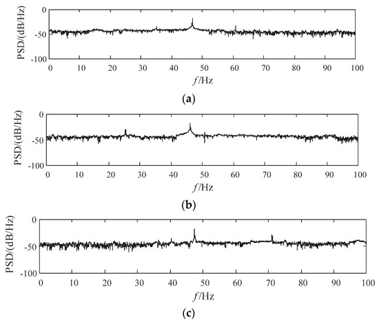 Power spectrum of the jet system under different flows. (a) Flow of 40 L/s, (b) Flow of 50 L/s, (c) Flow of 60 L/s.