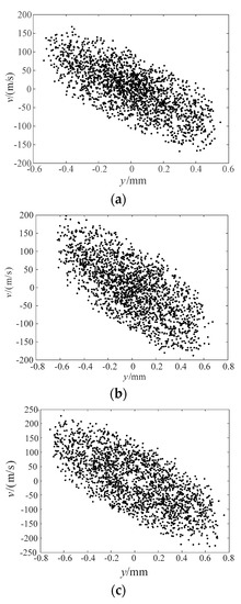 The stroboscopic sampling of the jet system at flows of 40 L/s, 50 L/s, and 60 L/s are shown in Figure 21. It can be seen that the stroboscopic sampling of the jet system under different flows is gathered in the fixed area rather than dispersedly distributed in the whole plane, and all the points on the stroboscopic sampling pattern form an oblique elliptical shape with limit-cycle oscillation, indicating that the designed adaptive fire-fighting monitor had no multi-cycle, bifurcation, or chaos under the corresponding design parameters and external excitation. Besides, the single-cycle characteristic result achieved with the experiment is consistent with the simulation results.
