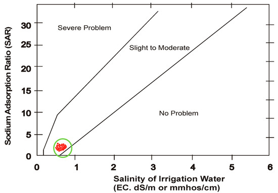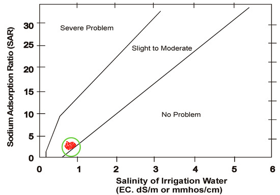| SAR and EC (Richard’s Diagram) | - | Medium Salinity with Low Sodium | |