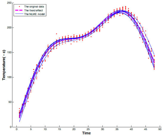 The fitted profiles of the nonlinear mixed effects model (NLME).