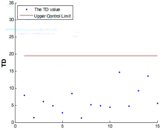 According to the aforementioned parameter estimates, the T2 control chart (Brill, 2001) is described by