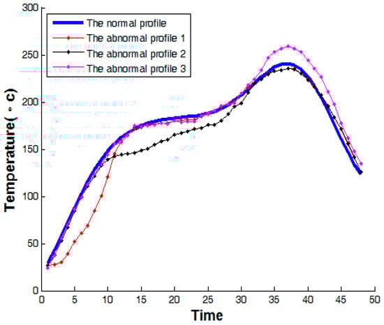 Statistical process control (SPC) has globally been applied for dealing with process monitoring in a variety of manufacturing processes []. The control charting technique is typically designed to monitor a univariate statistic, e.g., the sample average, standard deviation, range of a sequence of sample data, among others. However, several productive processes (e.g., reflow oven, heat treatment, etc.) have proven difficult to manage with a traditional SPC operation. The difficulty in these cases arises because a quality characteristic cannot be suitably characterized. If the quality characteristic of a product or process can be represented by a functional form between the quality characteristic and the input variable, then effective monitoring can be established. This scenario is the so-called “profile monitoring”.