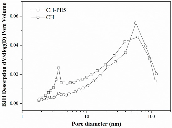 Pore size distribution of CH-PE5 and CH pellets.