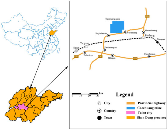 The Feicheng mining area, located in Taian, Shandong Province, China, is famous for water inrush disasters and abundance of Ordovician limestone (Figure 1 and Figure 2). Since the 1960s, 283 mine accidents have occurred in the Feicheng mining area. It is thought that 65% of recoverable reserves are lying above Ordovician water but are still seriously threatened by Ordovician water [14,15].